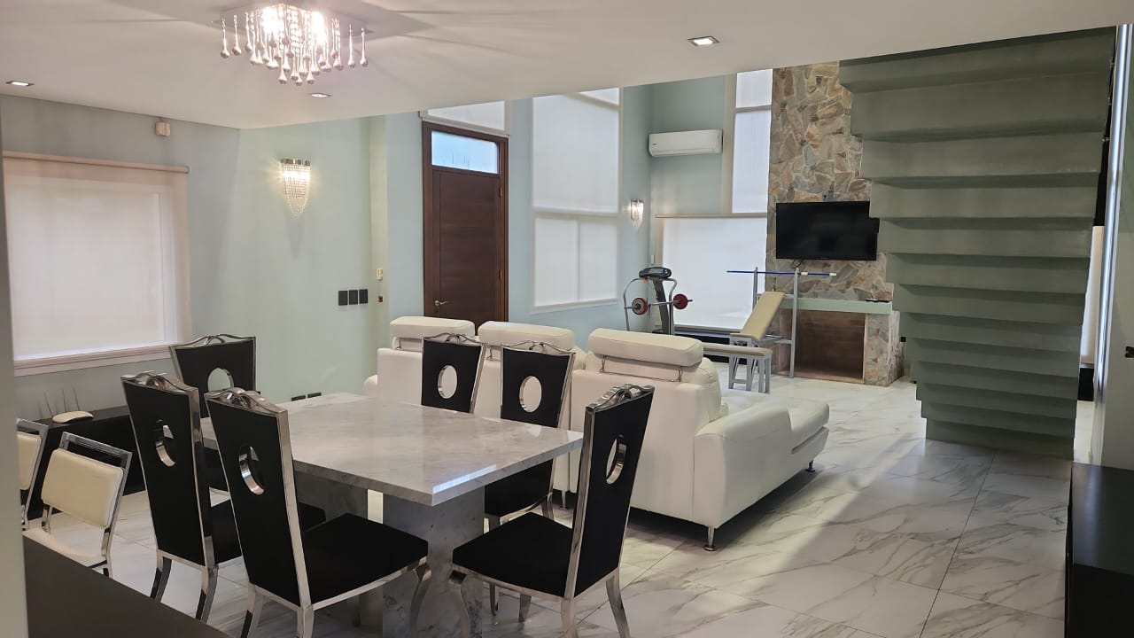 Planta baja: Amplio living-comedor, toilette de recepción, cocina completa con cincoambientes, lavadero, pisos de porcelanato, puertas de madera blindadas, alarma deseguridad, cortinas y rolleres todo eléctricos, iluminación LED, calefacción por losa radianteen todos los ambientes, aire acondicionado en todos los ambientes.